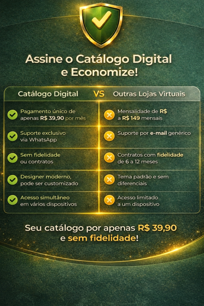 Com nosso catálogo digital, você exibe seus produtos de forma profissional, otimiza seu atendimento e economiza tempo e dinheiro.